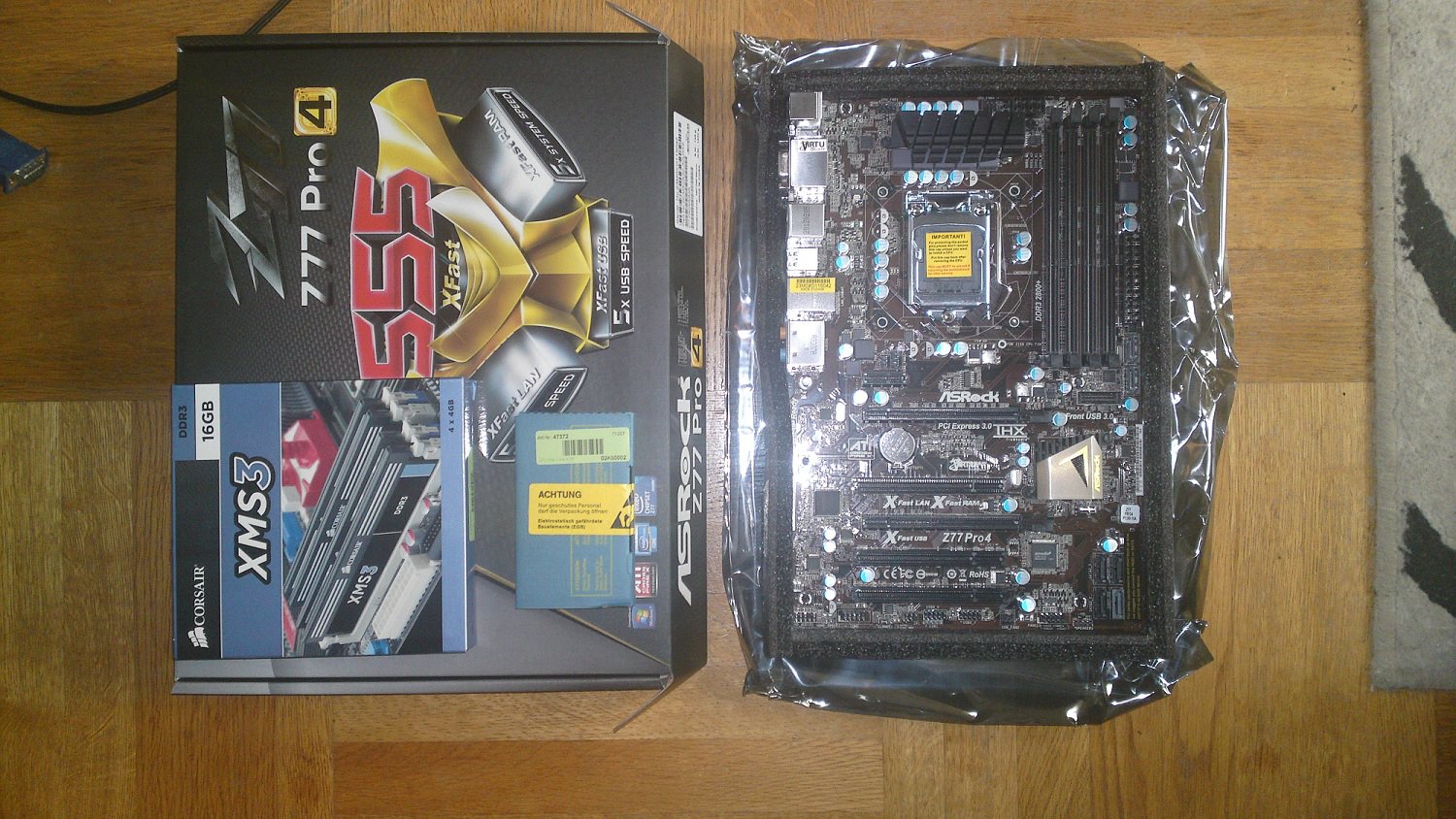ich hab ungeführ die gleiche Zusammenstellung bestellt , allerdings hab ich das Pro4 genommen da ich noch keinen Wert auf PCIe 3.0 lege ich werde auch glücklich mit einem 6950 2GB Crossfire Verbund , RAM hab ich mir ein 16GB Quad Kit geholt um das System mit einer 4GB RAM Disk zu Optimieren , beim CPU hab ich auch den 3570K genommen .