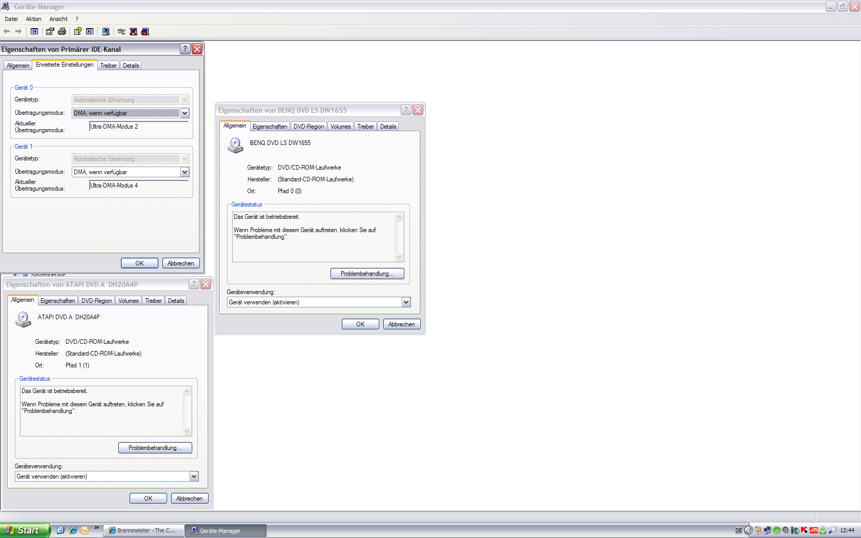 Ob sich der Brenner im PIO Modus befindet hab ich bereits geprüft, er läuft allerdings im UDMA 5 Modus, also kann es daran schonmal nicht liegen.